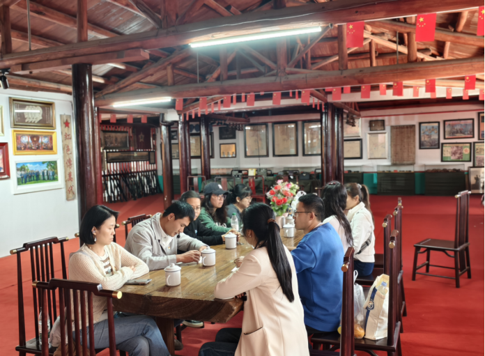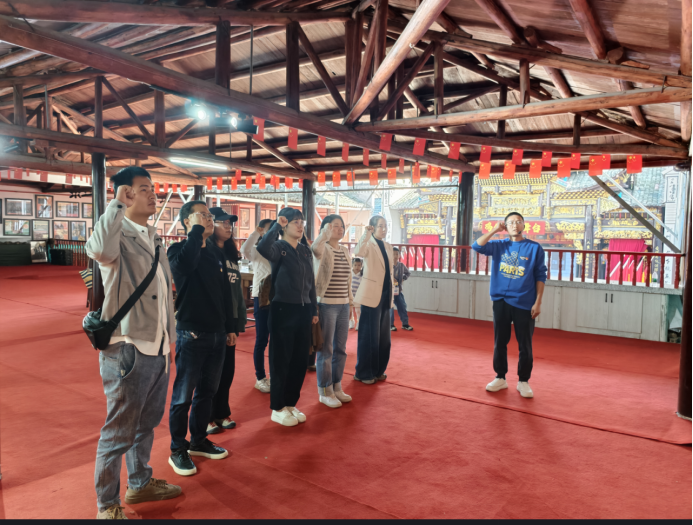 随后,队伍移步至红色文化馆。在参观学习馆内陈列的毛主席光辉事迹、开国将帅风采、党的光辉历程等内容后,支部委员组织党员集中学习了《习近平文化思想纲要》的重点章节。与会党员结合现场参观感悟与自身流动工作经历,围绕“习近平文化思想与文化遗产保护传承”主题展开了热烈研讨,交流如何立足岗位传承中华优秀传统文化、增强文化自信。研讨结束后,在庄重的党旗下,全体党员重温了入党誓词,誓言铿锵,进一步强化了党员的身份认同感和使命感。